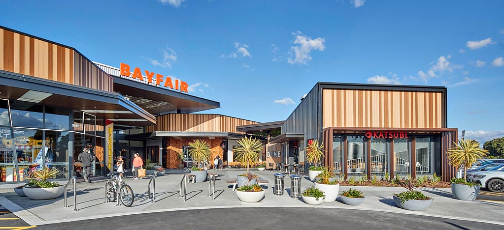 Stage 1 of the Bayfair Shopping Centre Expansion was completed in early December 2018. This stage included a Countdown Supermarket, a Cotton On mini-major tenancy, 40 specialty shops and 3 Kiosks. The final design, complimenting the mall’s seaside neighbourhood and laidback vibe, was warmly received by the local residents.