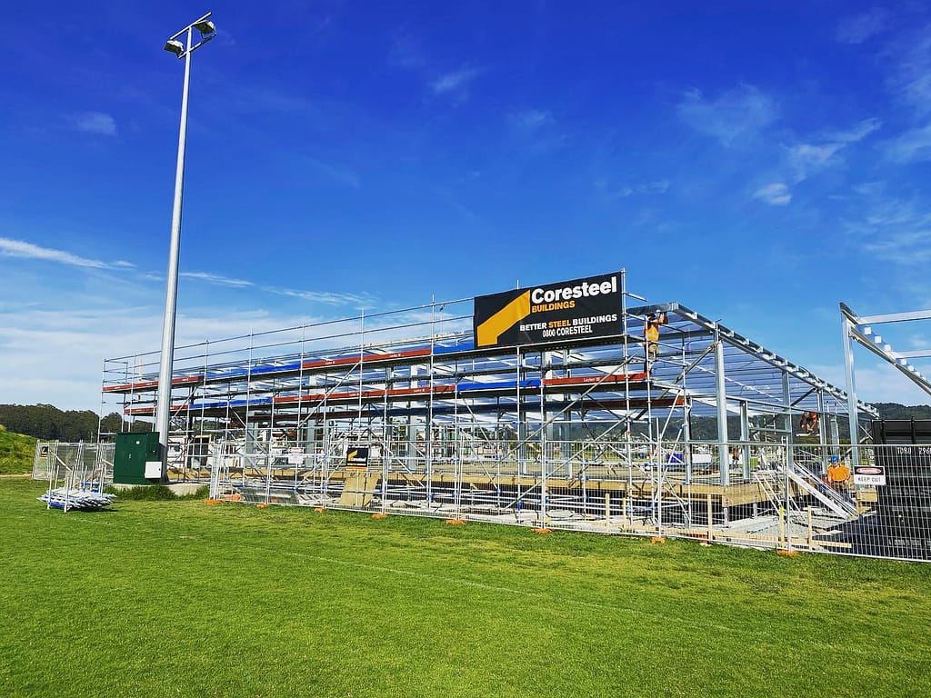 The onset of Spring weather hasn’t stopped the Coresteel Northland crew from pushing on with the construction of the new Northland Rugby Union sports facility. The new building will encompass world-class indoor training facilities, NRU offices, OBM and Taniwha clubrooms and more.