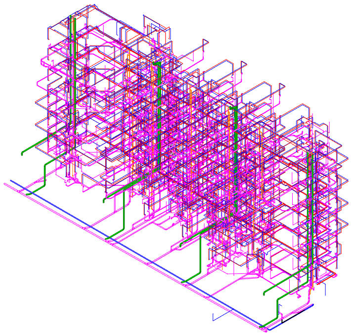 The image below shows an entire hydraulic system that is normally hidden behind the walls. Our designs allow the client, subcontractors and architects to walk through a 3D model prior to construction commencing. This is a proven way to reduce unforeseen errors, saving both time and money.